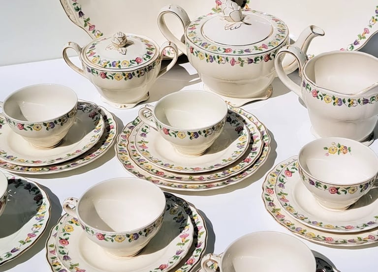 Ofrecemos cristalería, porcelana, platería, muebles, arte y adornos de vitrina.